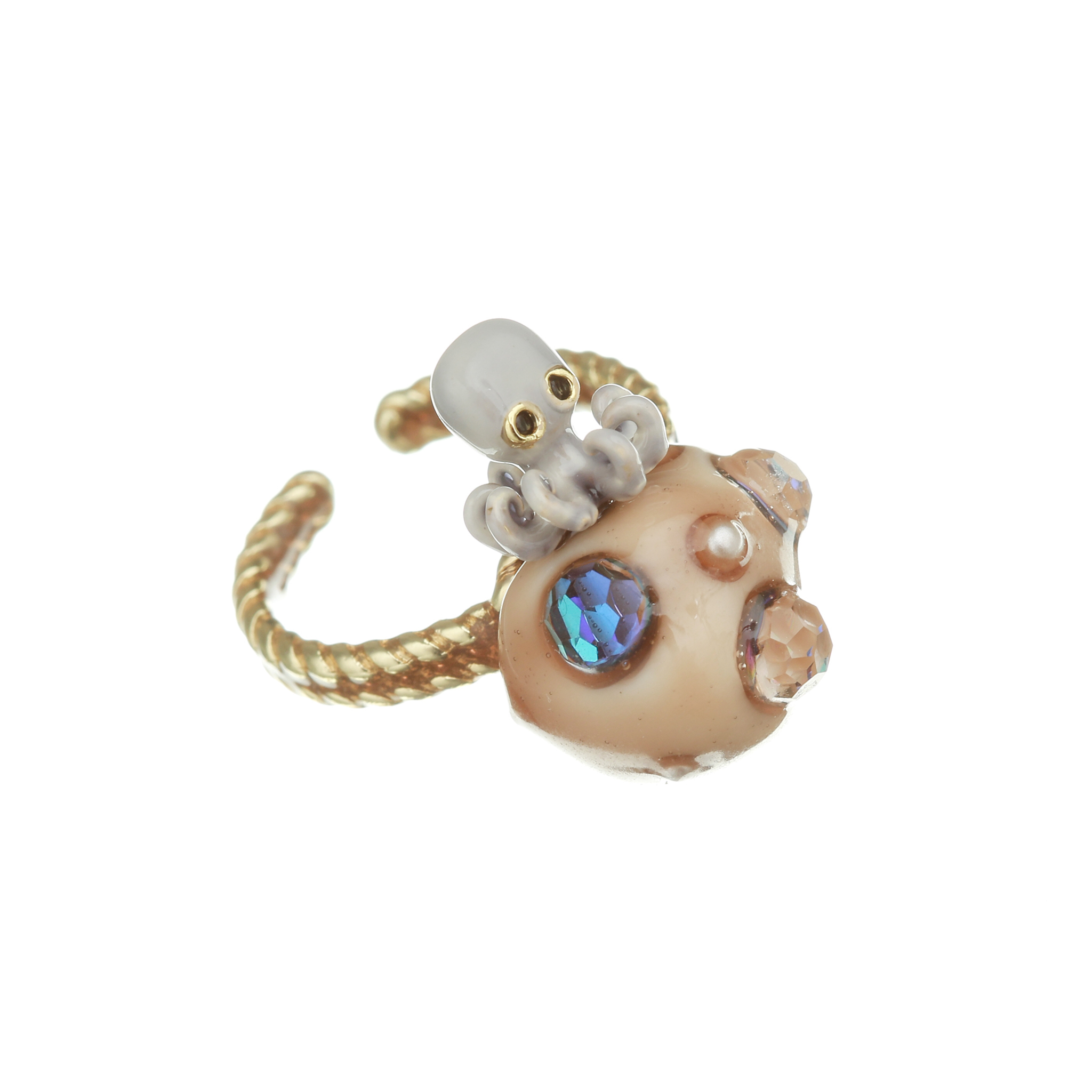 Brass gold platting, glass beads cat’s eyes , Swarovski crystals, hand enamel hot technique, made in Italy