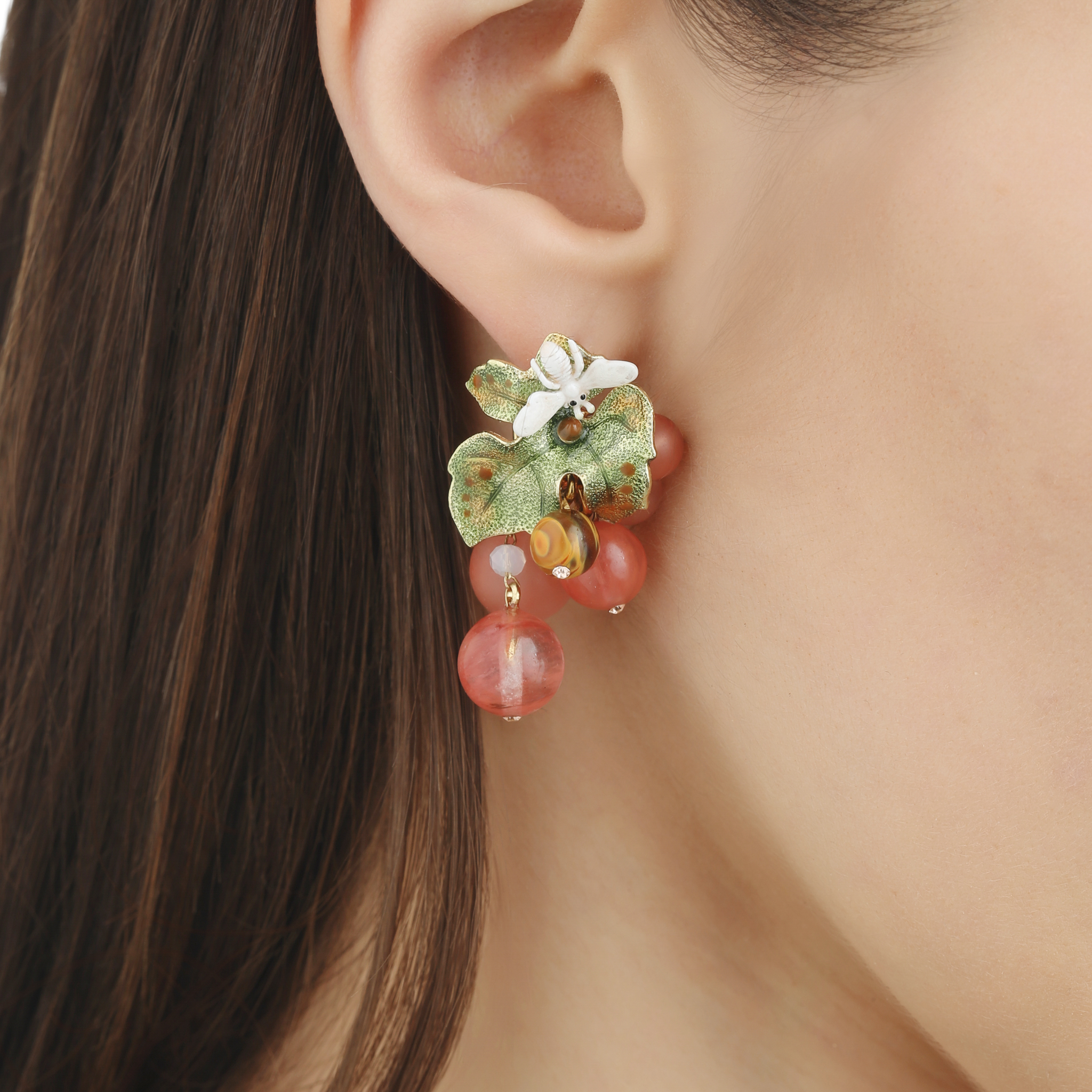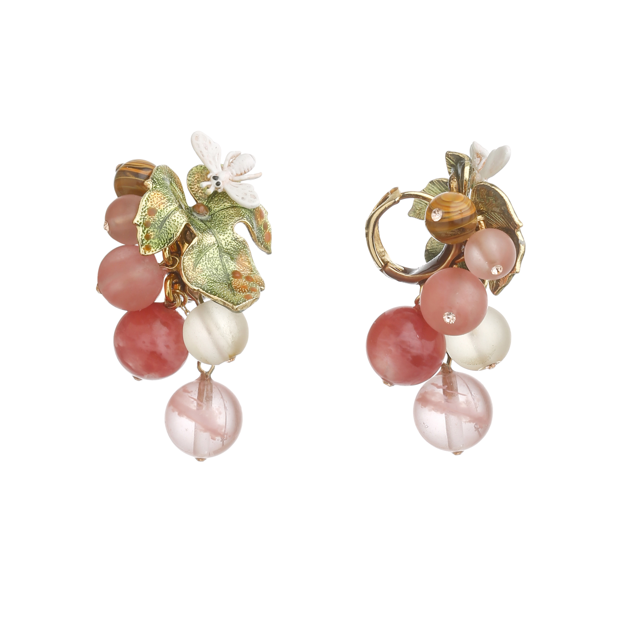 Brass gold platting, glass beads cat’s eyes , Swarovski crystals, hand enamel hot technique, made in Italy