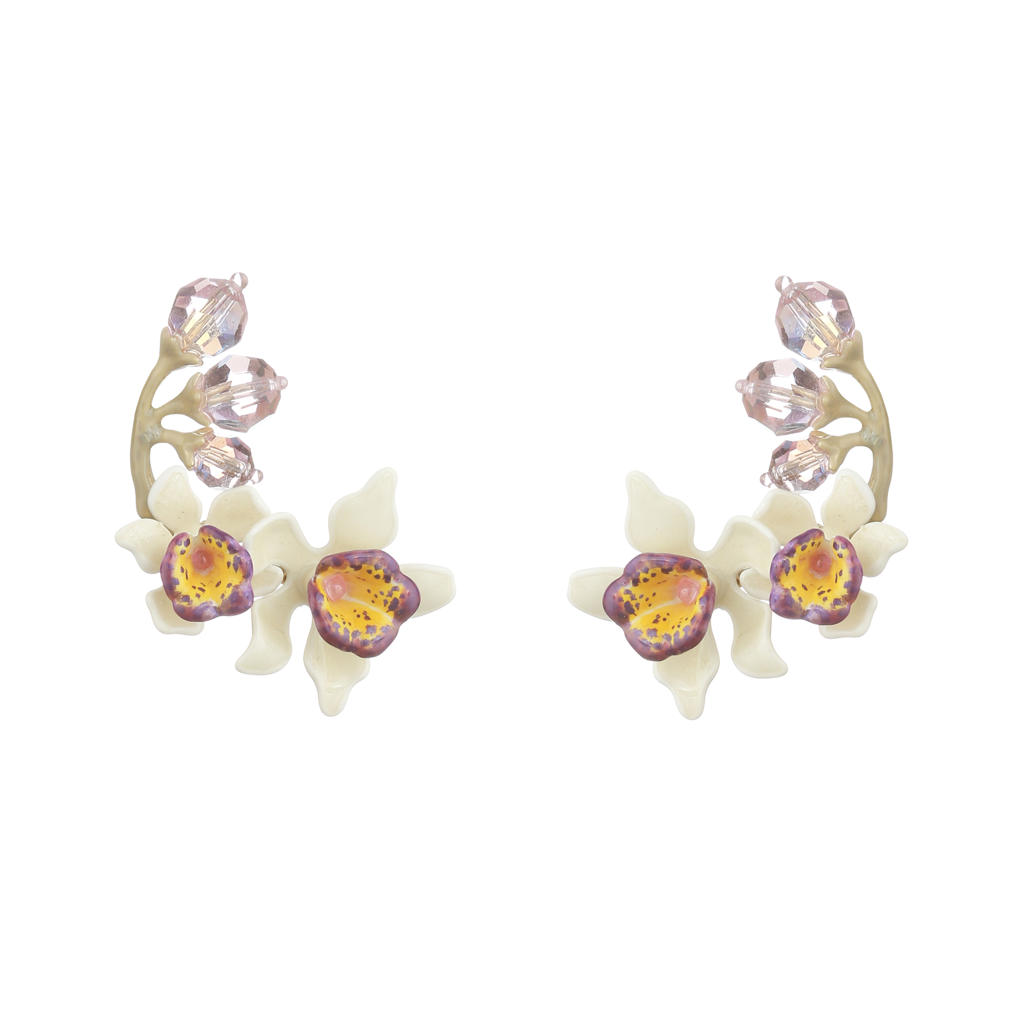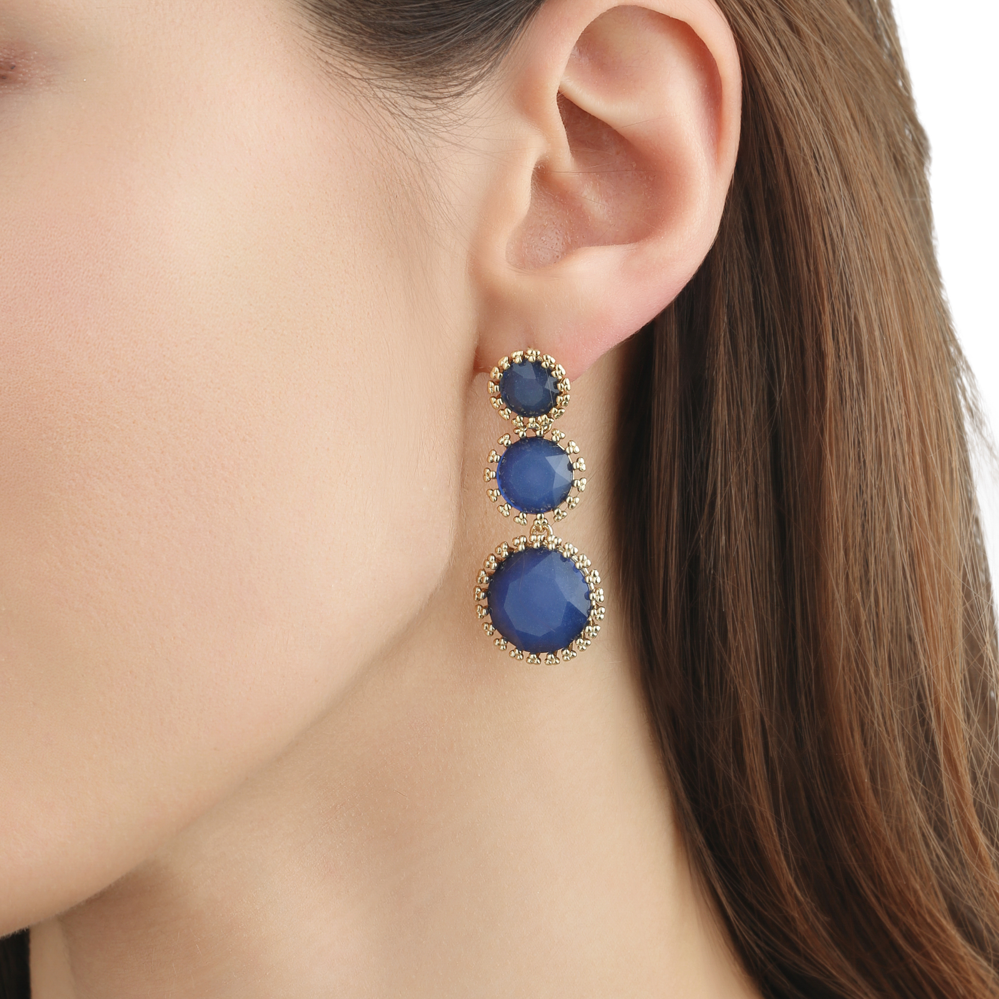 Silver 925° ear pin, brass gold platting , hand cut cristals, made in Italy