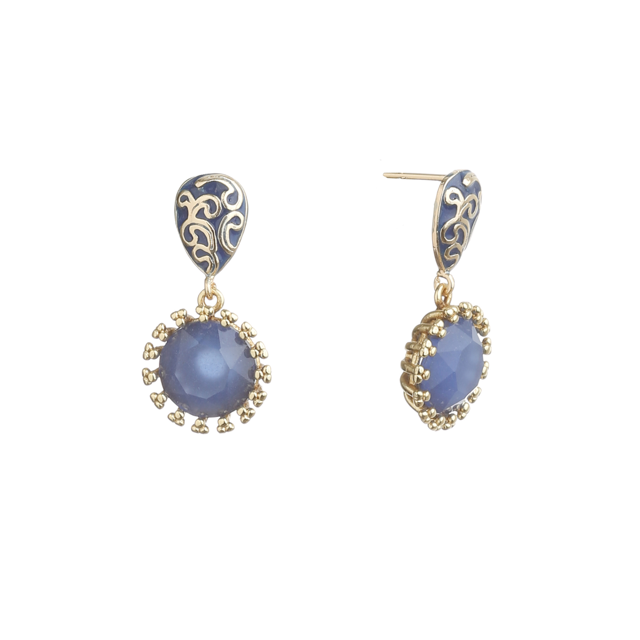 Silver 925° ear pin, brass gold platting , hand cut cristals, made in Italy