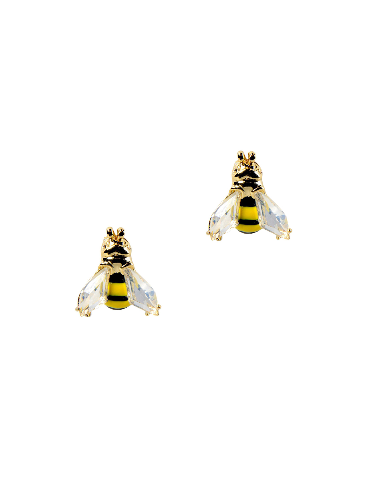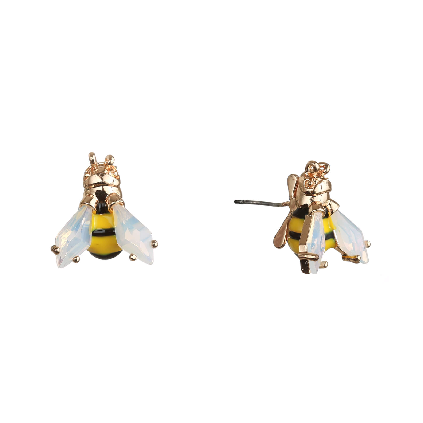1.5 cm bee with 925 silver lobe, hot glazes in black and yellow colors, aurora borealis crystal wings