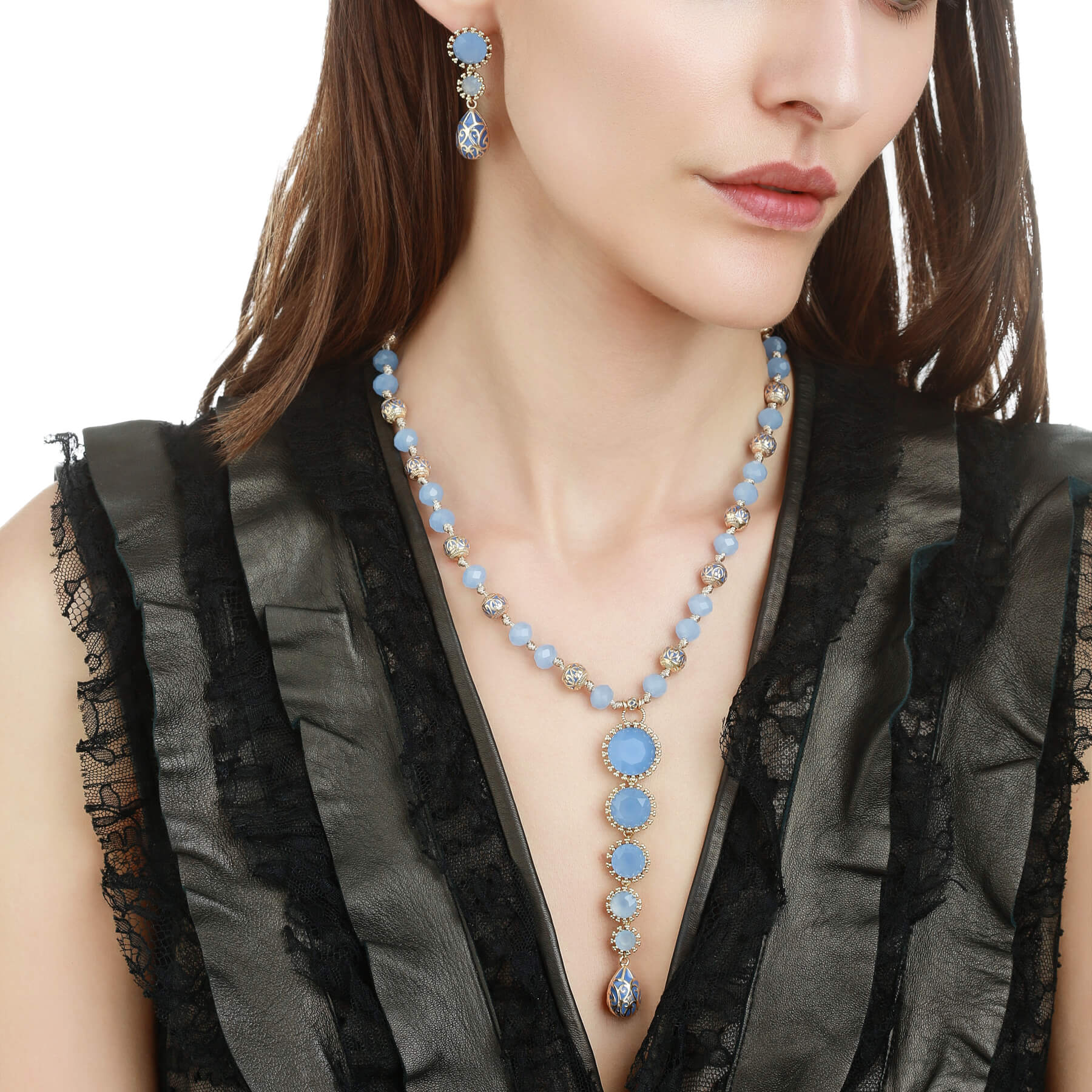 Gold plated brass, hand cut crystals, silk thread, hot technique hand enamels, made in Italy.