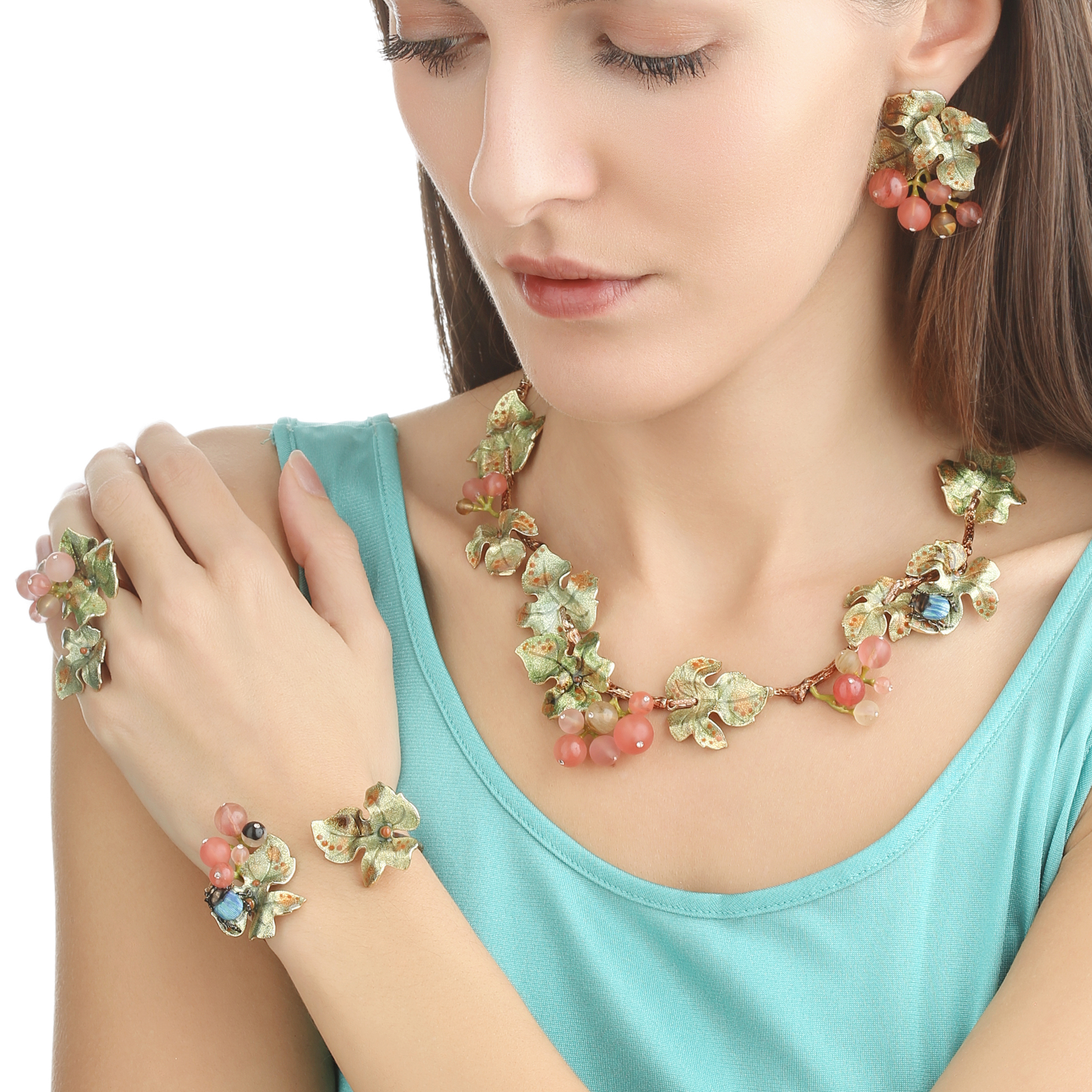 brass golg platting, cat’s eye glass beads, swarovski cristals, hand enamel hot technique , made in Italy