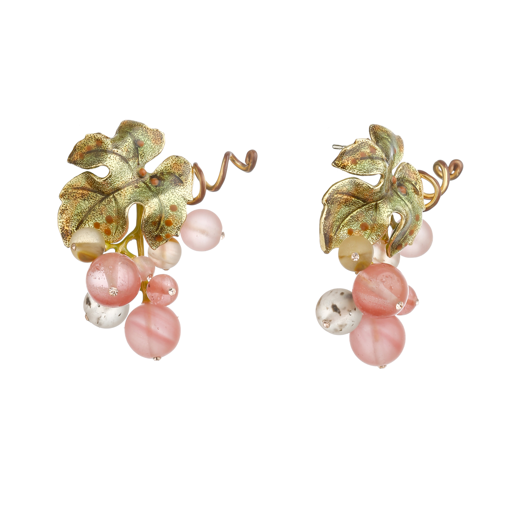 Brass gold platting, ear pin silver 925° glass beads cat’s eyes, Swarovski crystals, hand enamel hot technique, made in Italy