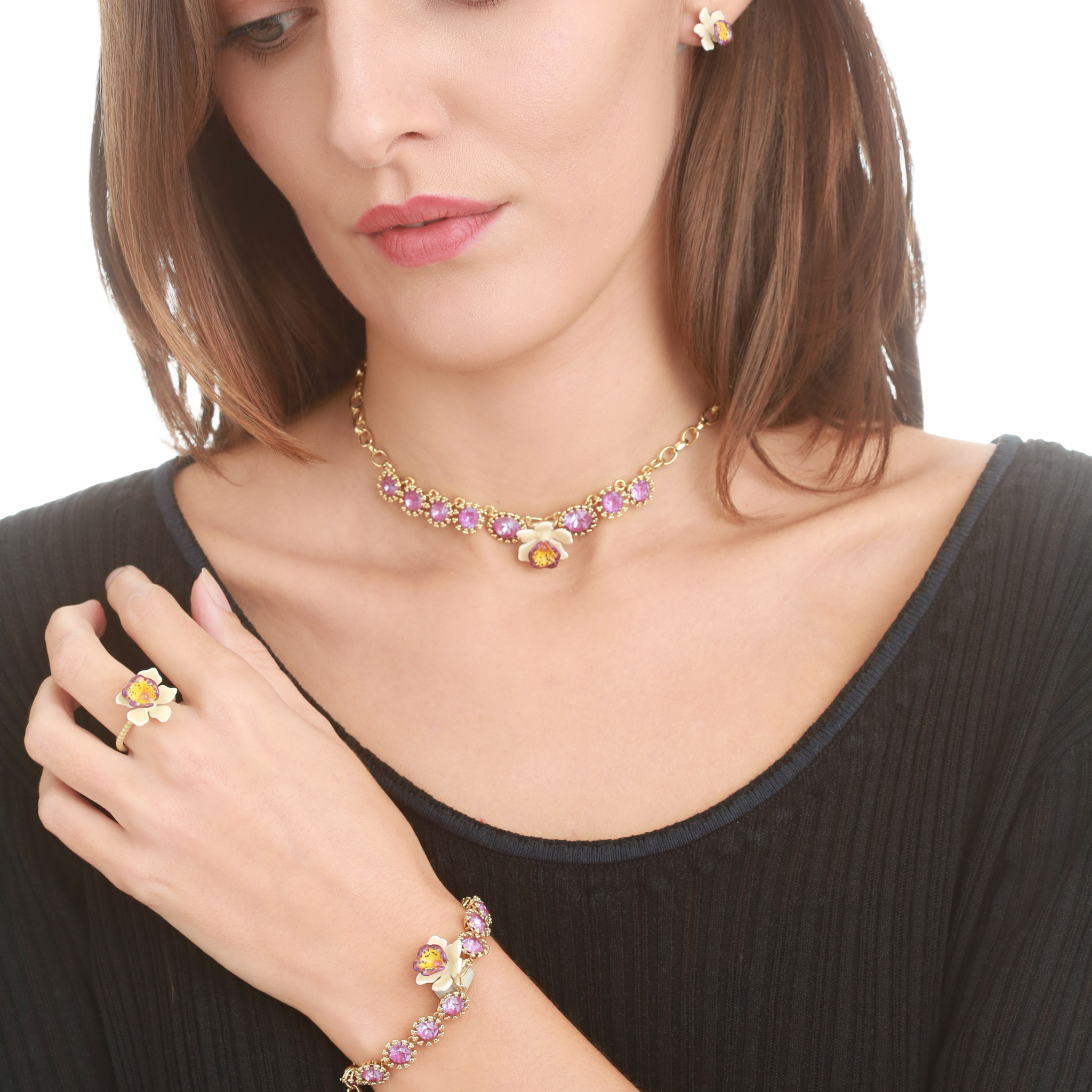 lenght 34 + 10 cm brass gold platting, hand enamel hot technique, cristals made in Italy