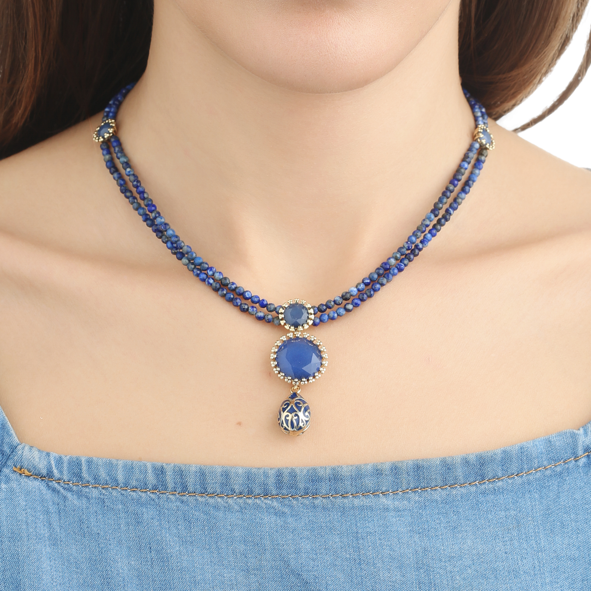Ottone placcato oro, cristalli tagliati a mano, lapislazzuli, prodotto in Italia