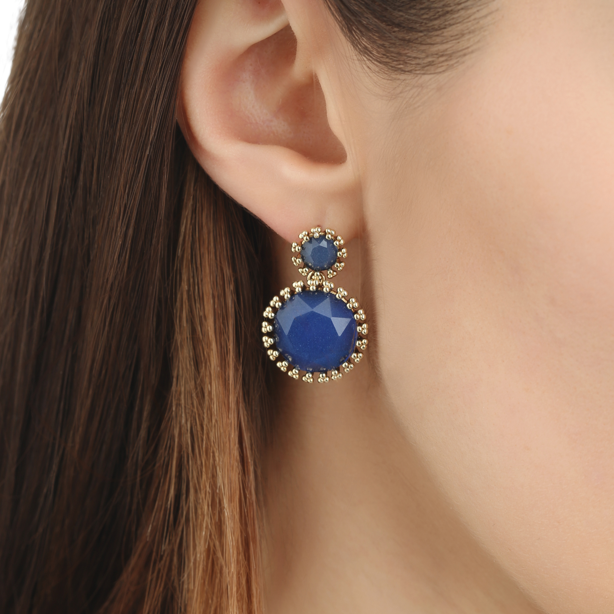 Ottone placcato oro, perni in argento 925°, smalti a caldo, cristalli tagliati a mano, prodotto in Italia