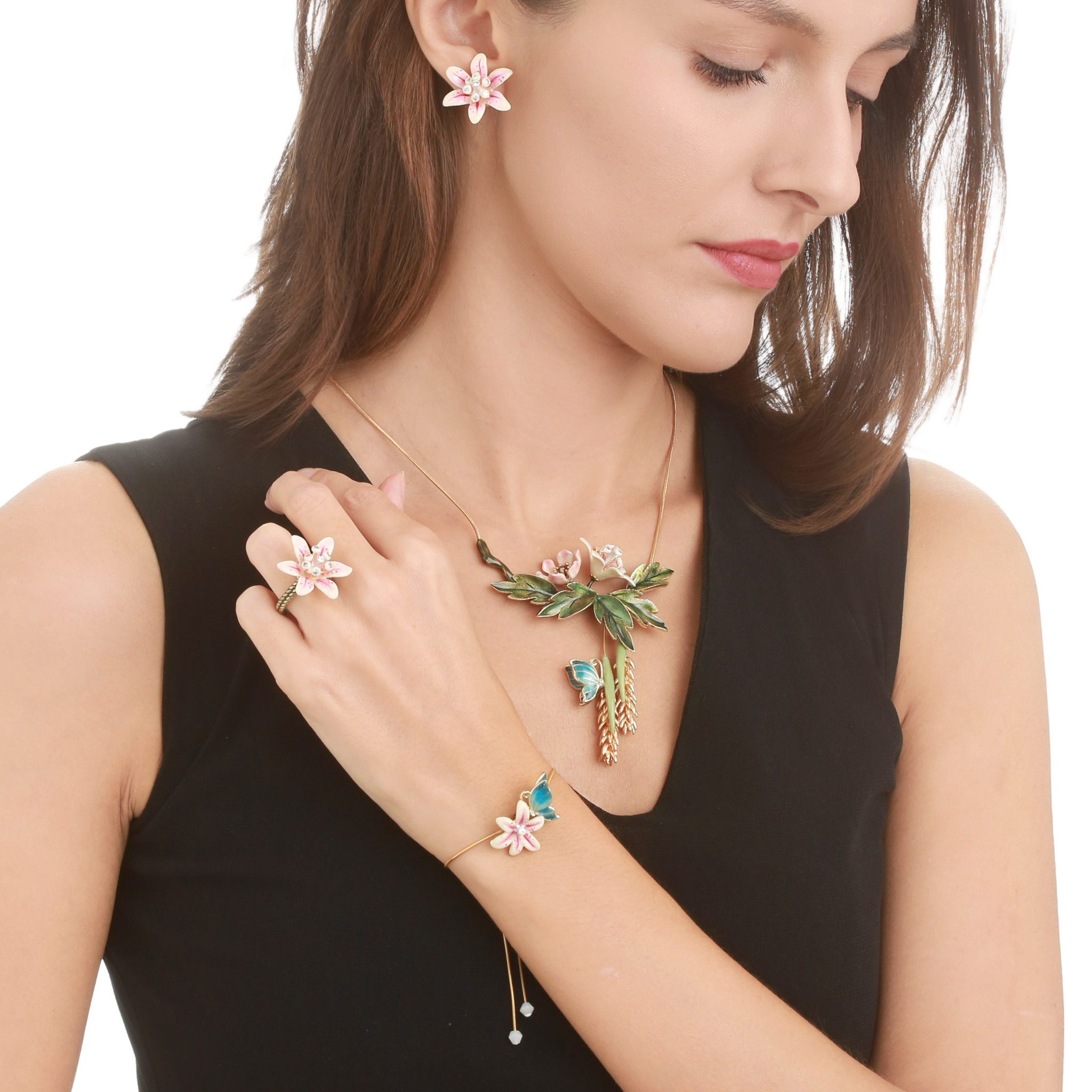 Ottone placcato oro, smalti a mano tecnica a caldo, misura regolabile, prodotto in Italia.