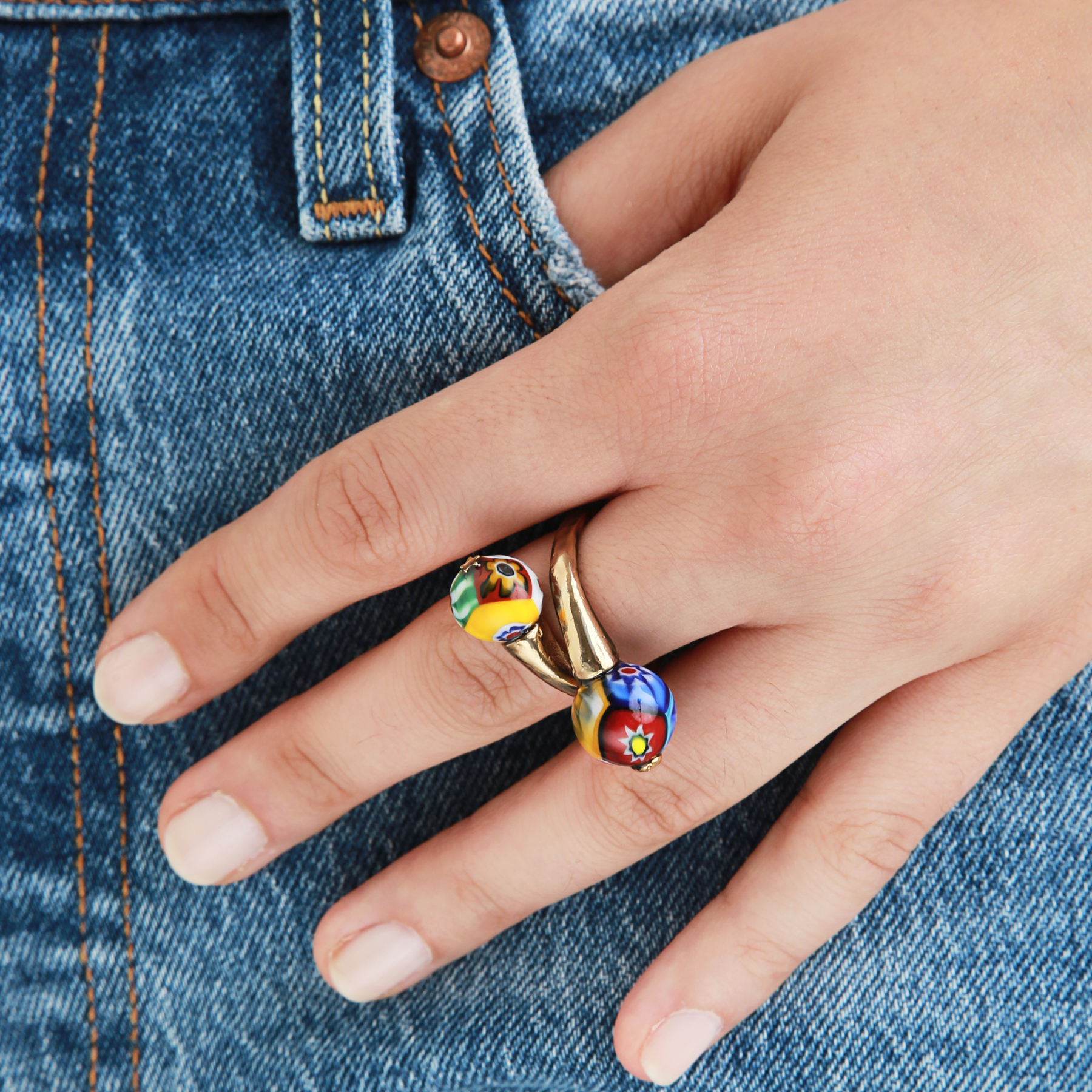 ottone placcato oro e murrine della onorata fonderia Moretti a Venezia producendo “murrine” dal 1911