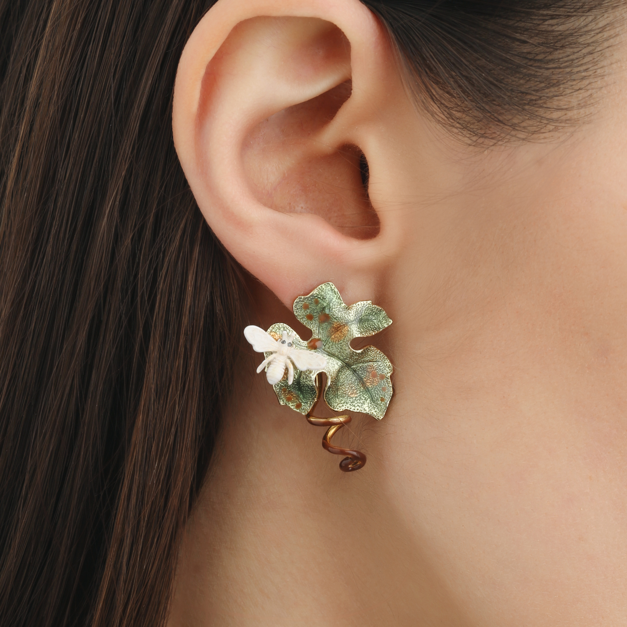 Ottone placcato oro, perni in argento 925°, smalti a mano tecnica a caldo, prodotto in Italia