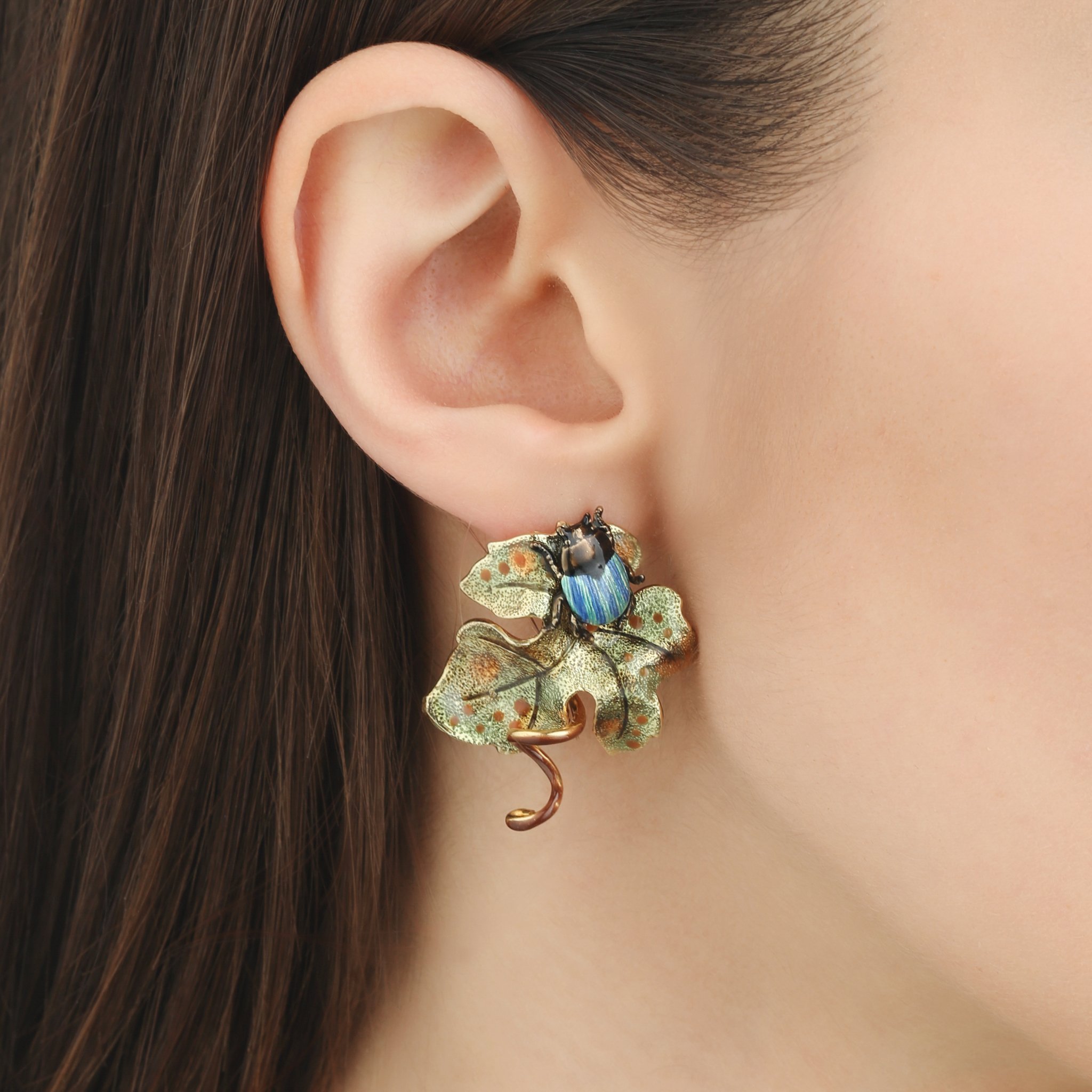 Ottone placcato oro, perni in argento 925°, smalti a mano tecnica a caldo, prodotto in Italia
