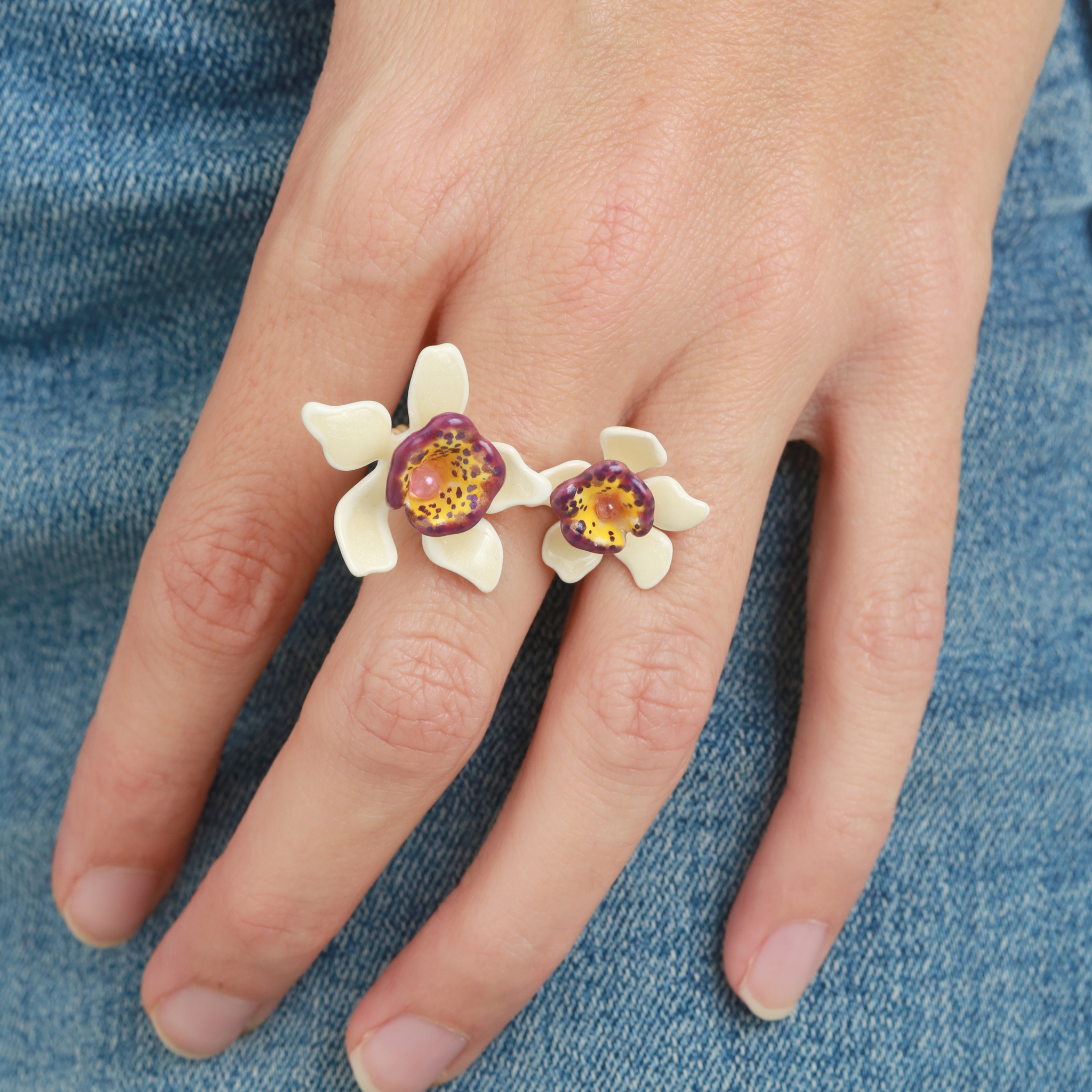 Regolabile Ottone placcato oro, cristalli, smaltato a mano tecnica a caldo, prodotto il Italia.