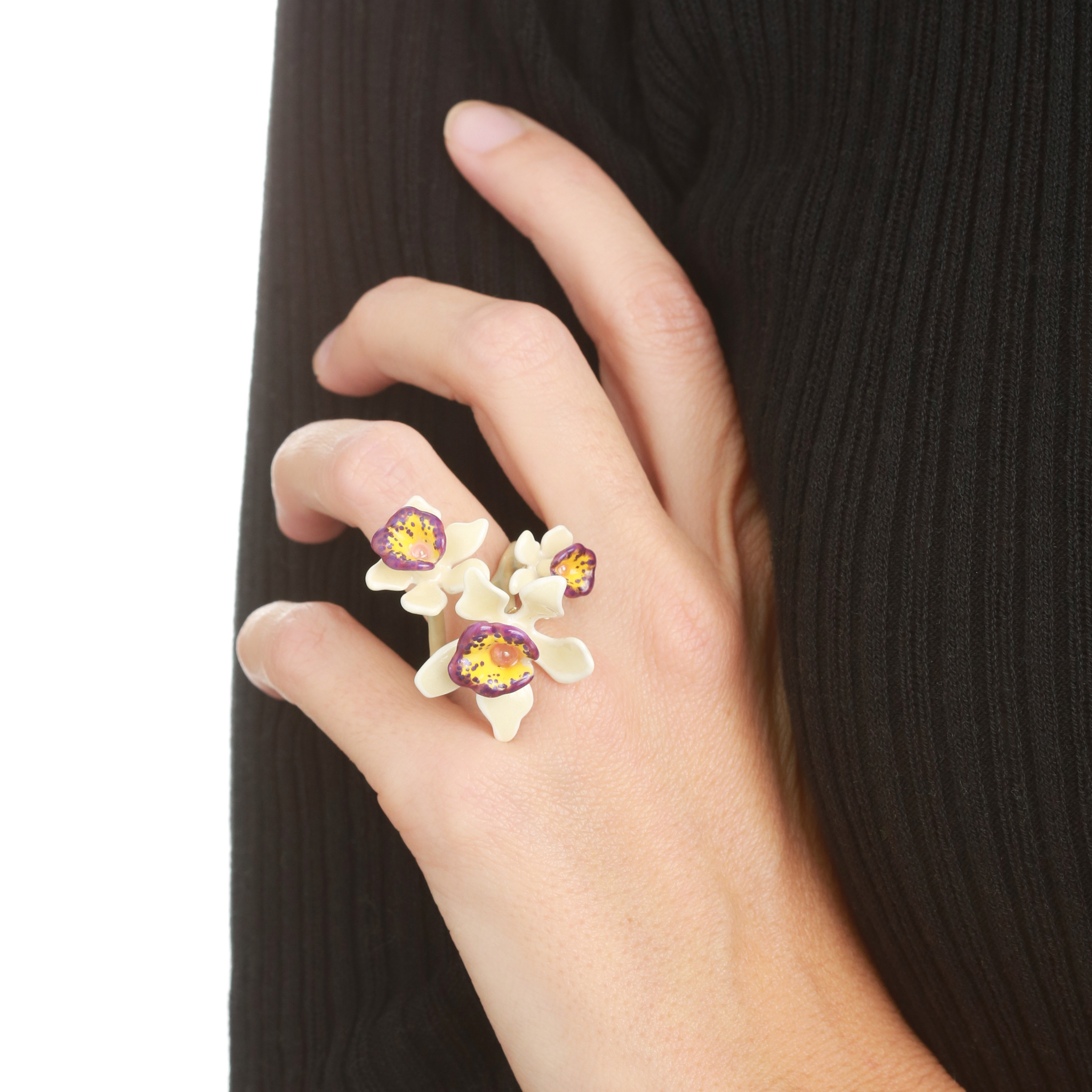 Regolabile Ottone placcato oro, cristalli, smaltato a mano tecnica a caldo, prodotto il Italia.