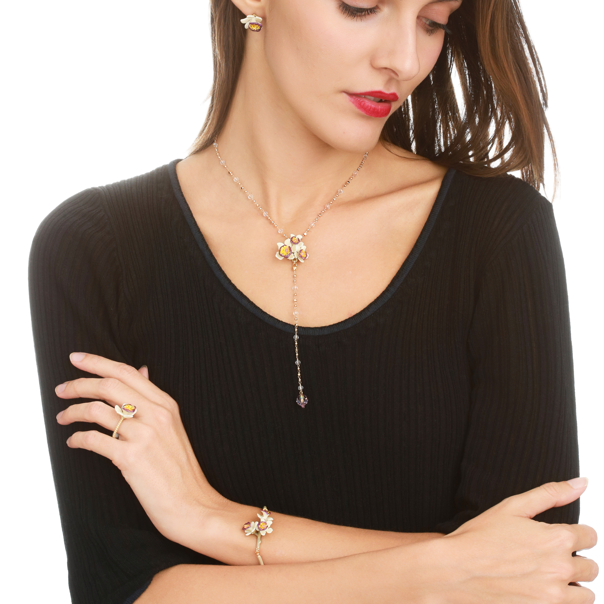 Misura 38 cm + 9 cm di estensione Ottone placcato oro, cristalli, smaltata a mano con tecnica a caldo, prodotta in Italia.