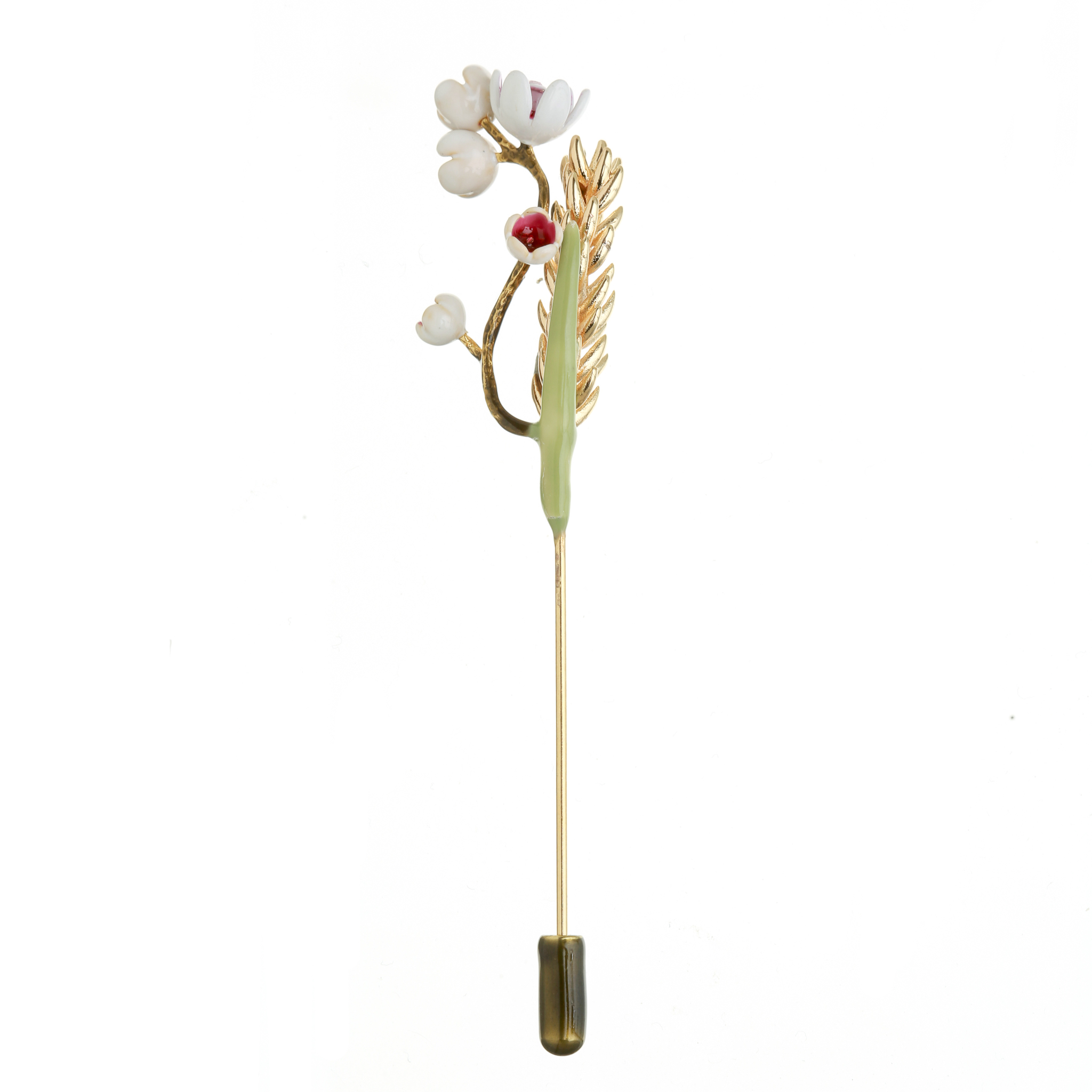 Ottone placcato oro, perle naturali, smalti a mano tecnica a caldo, prodotto in Italia.