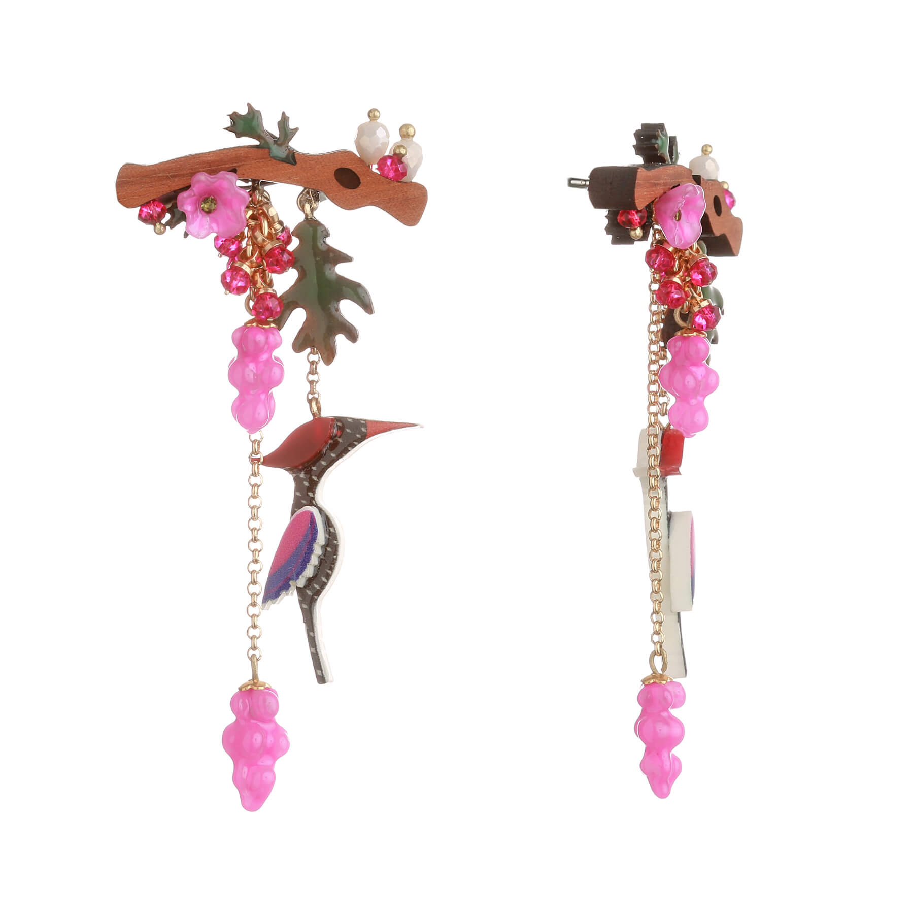 Misura 8.3*3.8 cm perno in argento 925° ipoallergenico, legno, metacrilato, smalti a mano, vetri vintage, cristalli, prodotto in Italia.